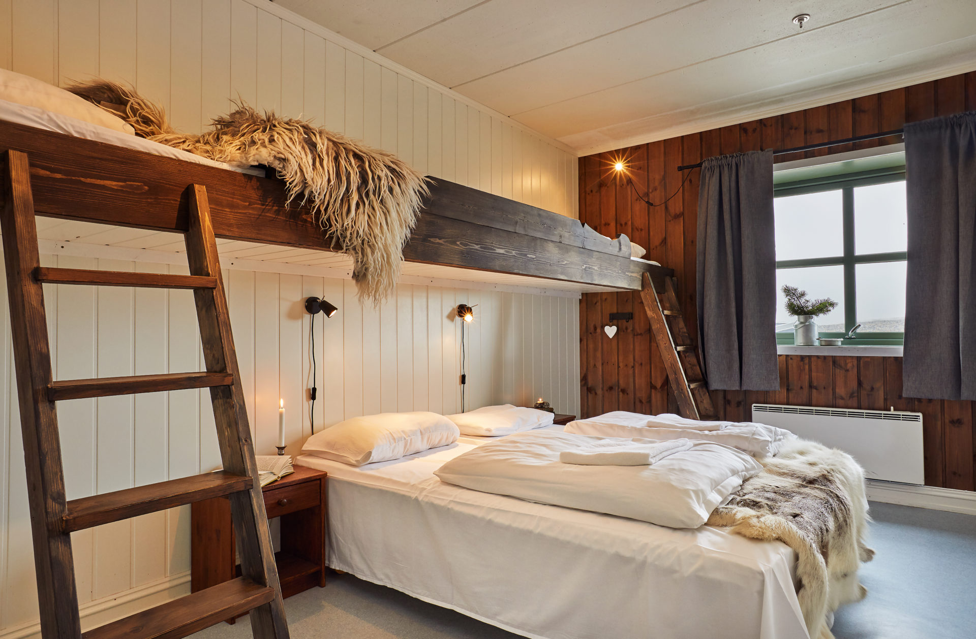 eller 3-5 sengs rom i losjibygg (dusj/wc i korridor).